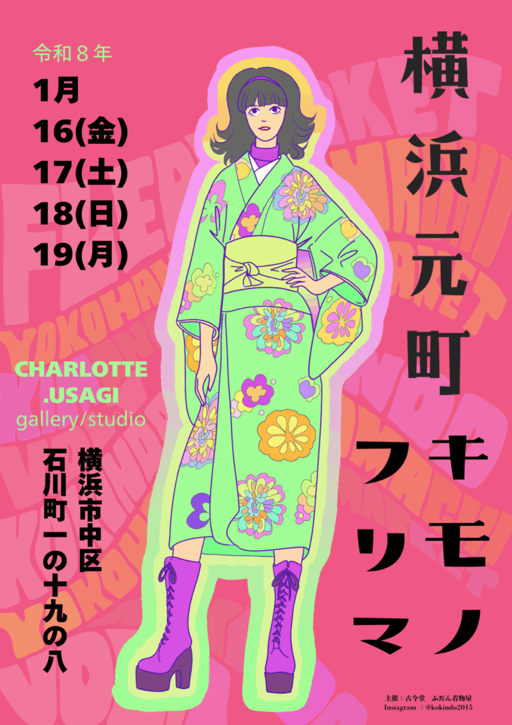 お知らせ1/16-19 横浜元町キモノフリマ x 松木さくら Play Pause Unmute Mute galerist tete2025年11月3日 Share: Facebook X 1月16日(金)〜19日(月)古今堂 ふだん着物屋さんの新春キモノフリマを開催いたします!可愛くてお手頃なキモノが沢山並ぶ予定です。また、日本画家の松木さくらさんの爽やかな日本画とのコラボ展示もございます。