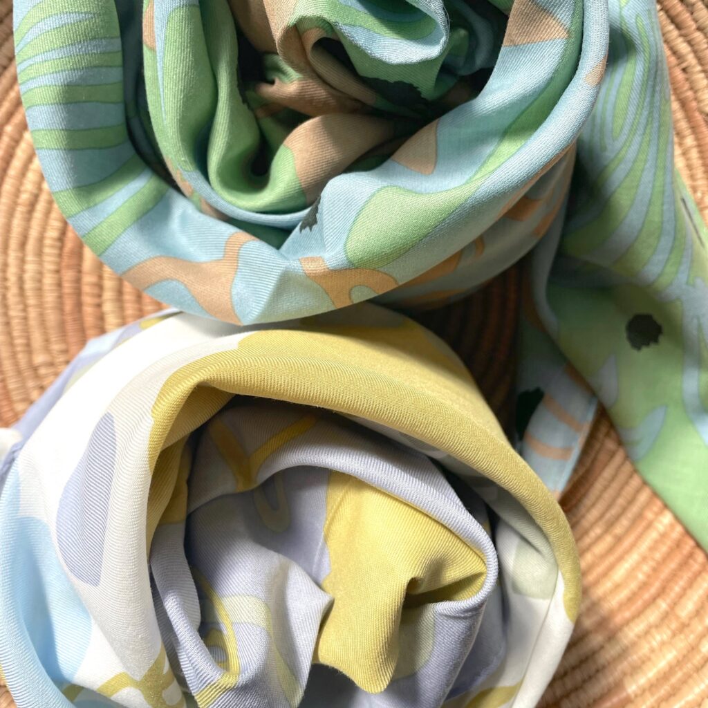 AMONGは豊かな自然をモチーフに、美しい色づかいのオリジナルテキスタイルをデザインしています。